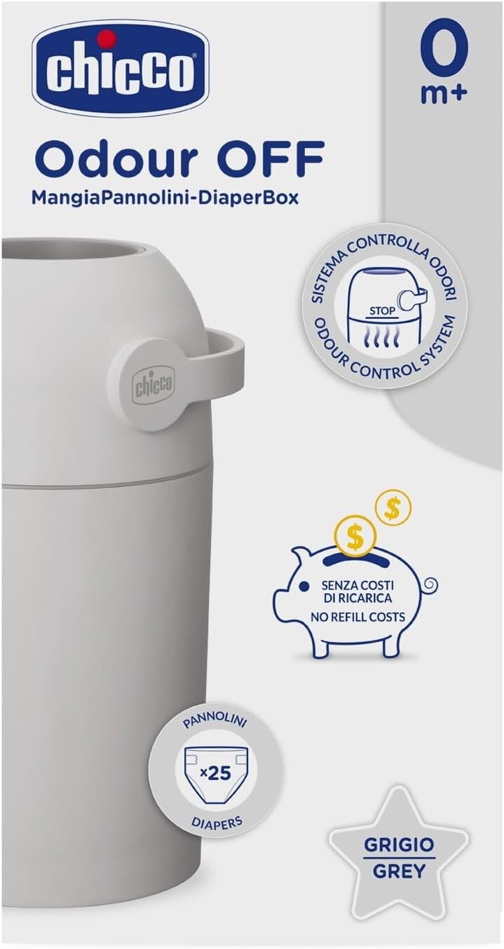 Chicco Contenedor Pañales con Control de Olores, Sistema de Deshecho de Pañales, Papelera Pañales Compacta, Ahorra Espacio, con Tapa, Fácil de Usar y Limpiar, Funciona con Bolsas de Plástico – Gris